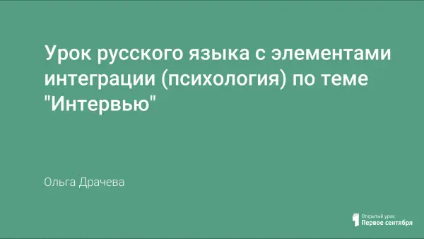 Урок развития речи с элементами интеграции построен на близком и понятном ученикам материале из школьной газеты «Большая перемена», телепередачи о школе. Интересен он и тем, что вести его помогали психолог школы и редактор газеты. Необычная форма проведения урока помогла семиклассникам подготовиться к написанию сочинения-интервью.