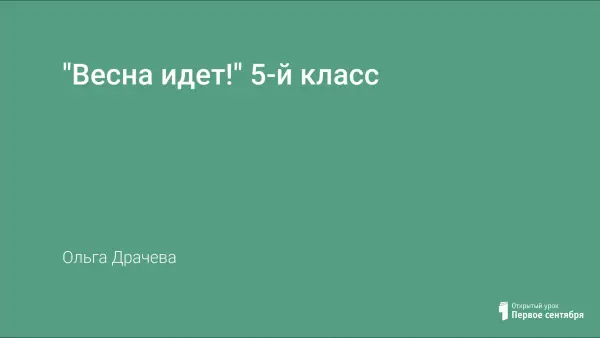 Вашему вниманию представляю урок литературы в 5-м классе «Весна идет!» Это урок – встреча с произведениями о Севере: лирическими миниатюрами М.Пришвина «Начало весны» и Ф.Абрамова «Февраль», стихотворениями О.Фокиной. Каждое слово в этих произведениях – емкий, лаконичный образ, требующий раздумий, помогающий найти прекрасное в обыденном и ярко, эмоционально описать природу и изменения, происходящие в ней.