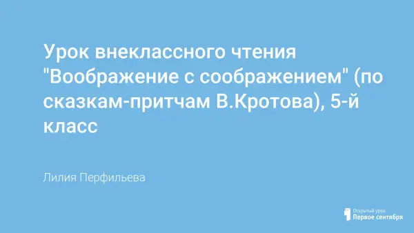 Представлен коснпект урока внеклассного чтения по сказкам-притчам Виктора Кротова: "Воображение с соображением". 5-й класс.