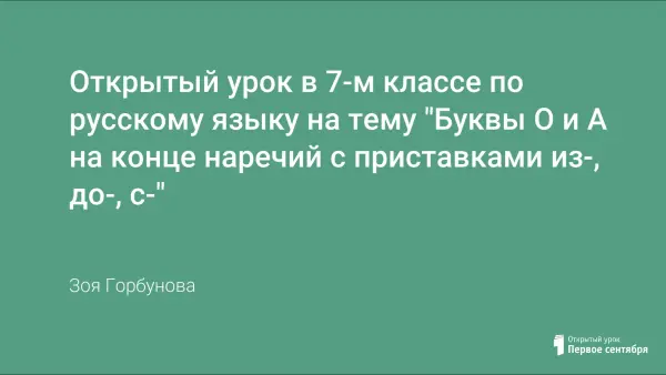 Представлен конспект открытого урока русского языка по теме "Буквы о и а на конце наречий с приставками -из -до -с".
