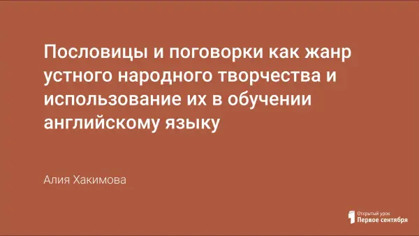 Использование пословиц и поговорок в обучении английскому языку в средней школе.