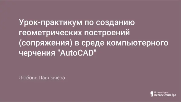 Тема «Сопряжения» изучается в школьном курсе на уроках черчения, технологии. Урок-практикум по созданию геометрических построений (сопряжения) в среде компьютерного черчения «AutoCAD» предназначен для классов, в которых изучается черчение с элементами компьютерной графики. Урок может быть включен в программу по компьютерной инженерной графике для учащихся старших классов профильно-технического уровня.