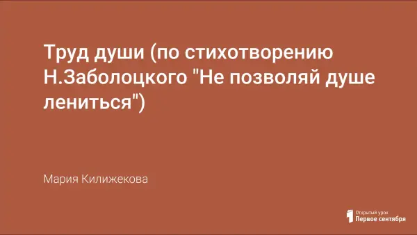 Мастерская проводится на уроке, посвященном творчеству Н.Заболоцкого в 6-м классе. Участников мастерской нужно посадить по группам (6 групп по 4–5 человек вокруг столов). Задачей урока можно считать приобщение учащихся к миру идей, образов поэзии Заболоцкого, мастерская также обучает анализировать поэтический текст. Анализ в данном случае - это способ понять замысел автора.