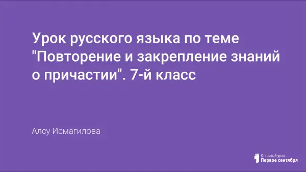 В процессе урока происходит систематизация знаний о причастии: формируются умения находить причастие и определять его грамматические признаки, выявляются роли причастий в речи, составляется связный рассказ, ученики обучаются написанию сочинения-этюда. Продолжается знакомство с творчеством поэтов и писателей, обращавшихся к теме родной природы, с богатством языка их произведений.