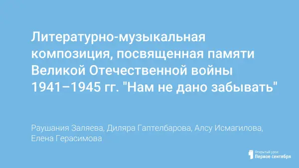 Литературно-музыкальная композиция посвящена памяти Великой Отечественной войны 1941–1945 годов, знакомит с поэзией времен Великой Отечественной войны и послевоенного периода. Мероприятие способствует пробуждению уважения к истории войны, воспитывает патриотические чувства. Обучающиеся вспоминают трагические страницы Великой Отечественной войны, читают стихотворения этих лет, приводят данные из архивных материалов.