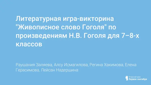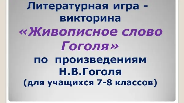 Литературная игра-викторина "Живописное слово Гоголя" по произведениям Н.В. Гоголя для 7–8-х классов