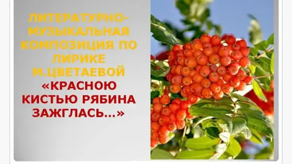 Литературно-музыкальная композиция по творчеству Марины Цветаевой призвана заинтересовать учащихся личностью М.Цветаевой, увлечь поэтическим творчеством, в котором и верность родине, и прославление человека, и убийственная ирония, и страстная любовь; отметить особенности поэтической манеры Цветаевой: упругость строки, быстрый ритм, неожиданную рифмовку, стремление к сжатому, краткому, выразительному стиху.