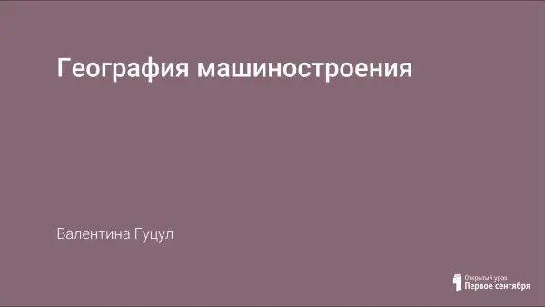 Урок по теме "География машиностроения" для учащихся 9-х классов раскрывает главную цель: формирование у школьников представления о факторах, оказывающих решающую роль в размещении предприятий машиностроения по территории России, как отрасли в целом, так и отдельных ее направлений. Анализируя карту и схемы учебника, дети формулируют выводы, что на размещение отраслей машиностроения в слабой степени влияют природные факторы, а в большей - воздействие экономических.