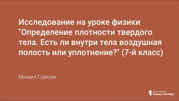 Исследовательский урок по физике. В работе предлагается проблемное задание, в результате которого вводится новое понятие – плотность тела. Затем ученики применяют понятие плотности тела для решения практических задач.