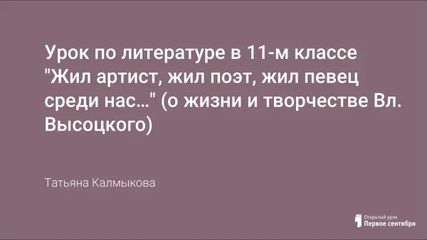 Совсем недавно, 25 января исполнилось бы 70 лет со дня рождения Владимира Высоцкого. Этот урок - не дань моде, а дань памяти. Памяти о человеке, поэте, который воплотил в себе боль и совесть своего времени. Целью этого урока является знакомство с жизнью и творчеством Вл. Высоцкого через воспоминания людей, которые жили рядом с ним, знали и любили его. Через воспоминания различных людей, близких и не очень, хорошо знавших Вл. Высоцкого, восхищавшихся его песнями, учащиеся должны понять: Каким он был?