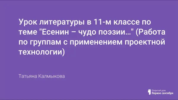 Целью данного урока является знакомство учащихся с особенностями творчества поэта С.А. Есенина, с