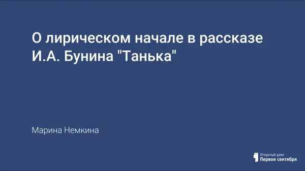 Исследователи считают, что первые опыты в прозе И.А. Бунина были несовершенны, но всё же уже ощущалась особая манера писателя, к новациям раннего Бунина обычно относят и лиризацию прозы. По мнению литературоведов, вершиной раннего творчества Бунина является рассказ "Антоновские яблоки". На наш взгляд, лирическое начало присутствует уже в рассказе "Танька". Статья может быть интересна преподавателям литературы.