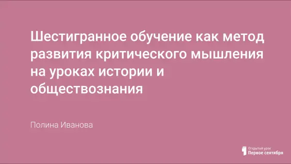 Каждый учитель получает наибольшее наслаждение тогда, когда он видит результаты своей работы. Лучший способ убедиться, что учебный материал усвоен учениками хорошо, это оперирование прошлыми знаниями, их применение в новых условиях, когда выполняются операции сравнения, анализа, синтеза новых знаний. Технология развития критического мышления дает возможность личностного роста школьника, приобщает ребенка к духовному опыту человечества, развивает его ум и индивидуальность. Одним из приемов развития критического мышления является шестиугольное обучение. Этот метод позволяет уйти от пассивного слушания к активной форме работы учащихся, что приводит к повышению эффективности занятий. Автором данной методики является англичанин, учитель истории Рассел Тарр.