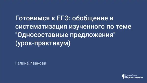 Урок русского языка учит обучающихся 8 класса определять виды односоставных предложений, способы выражения главного члена предложения; отличать односоставные предложения от двусоставных неполных; правильно расставлять знаки препинания в сложных предложения, в состав которых входят односоставные; работать с тестовыми заданиями ЕГЭ.