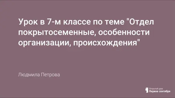 Представлен конспект урока биологии по теме: "Отдел покрытосеменные, особенности организации, происхождение", для учащихся 7-го класса.