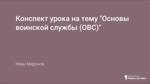 Цель данного урока - познакомить учащихся с правовыми основами военной службы и статусом военнослужащего; объяснить порядок призыва и необходимость военной службы.