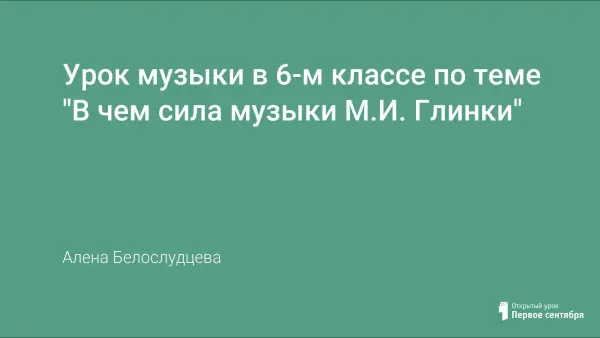 Данный урок предназначен для проведения в 6-м классе общеобразовательной школы при возможности доступа в сеть Internet. На уроке рассматриваются известные произведения М.И. Глинки, способствующие эстетическому воспитанию личности учащихся, расширению кругозора, воспитанию любви к музыкальному искусству.
