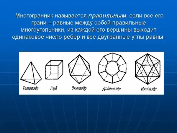 Занятие знакомит учащихся с правильными многогранниками, их особенностями, с формулой Эйлера, применением правильных многогранников в различных сферах, формирует представления на наглядном материале.