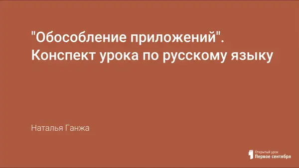 Цели урока: выведение правила обособления приложения; употребление способа деятельности на новом материале; совершенствование умения работы в паре.