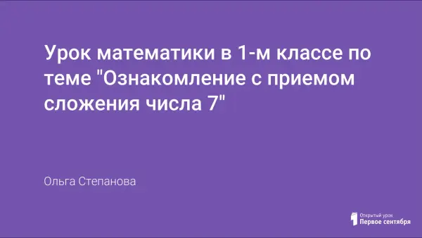Цели урока: ознакомление с приемом сложения числа 7. На занятии развивается умение анализировать, обобщать материал; формируется умение работать в паре, группе.