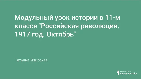 Представлен конспект модульного урока истории в 11-м классе по теме: "Российская революция 1917 год. Октябрь".