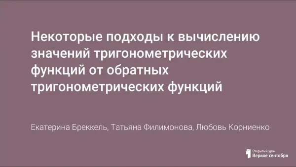 Некоторые подходы к вычислению значений тригонометрических функций от обратных тригонометрических функций