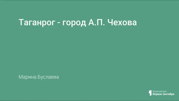 Урок литературы в 9-х или 10-х классах при изучении творчества А.П.Чехова. Урок-экскурсия по чеховскому Таганрогу. Цель урока: познакомить с жизнью и деятельностью А.П.Чехова в Таганроге, воспитывать любовь к писателю-земляку, чувство национальной гордости.
