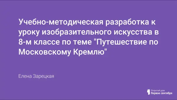 Урок проводится с целью знакомства учащихся с архитектурой Московского Кремля. Использование в ходе урока электронных образовательных ресурсов позволяет развивать творческую и познавательную активность, ассоциативно-образное мышление, активизировать внимание учащихся, повысить эффективность процесса обучения через его интерактивный характер, сделать урок насыщенным, интересным, максимально наглядным, что особенно важно на уроках изобразительного искусства.