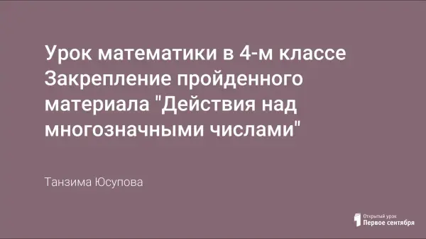 Урок математики в 4-м классе по учебнику М.И. Моро, М.А. Бантова направлен на отработку вычислительных навыков. Учащиеся путём выполнения самостоятельных заданий оценивают свои знания. Применяемые методы и формы позволяют развивать у детей коммуникативные качества, умение оценивать свою работу и работу товарищей, позволяют чувствовать себя на уроке комфортно.