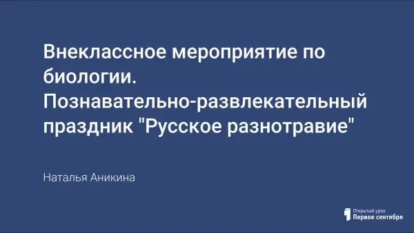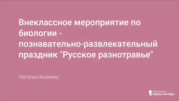 Задачи экологического восприятия в нашей школе решаются через внеклассную работу по биологии и экологии. Предлагается сценарий познавательно-развлекательного праздника для учащихся 6-7-х классов.