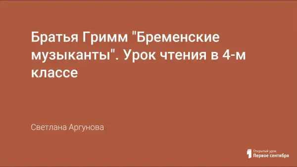 Тема урока: Братья Гримм. "Бременские музыканты".