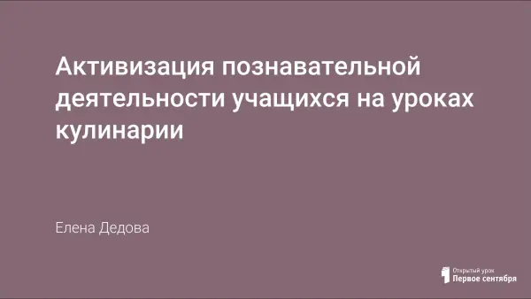 Активизация познавательной деятельности учащихся на уроках кулинарии