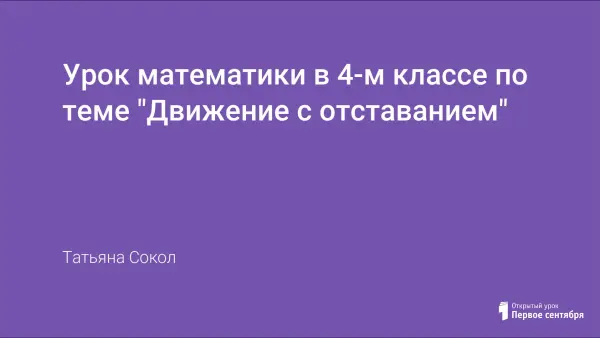 Предлагается разработка урока по теме «Движение с отставанием» по математике 4 класса (авт. Л.Г. Петерсон) в образовательной системе «Школа-2100».