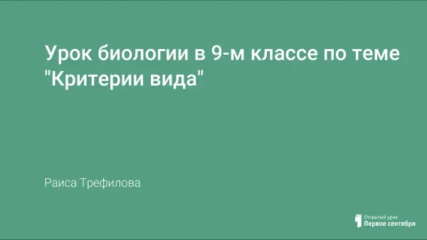 Урок "Критерии вида " проведен в 9-м классе в форме заседания биологического клуба. Учащиеся работают в группах по 4 человека и представляют научные секции: "История биологии", "Морфология и систематика", "Генетика" и др. Представители каждой секции выдвигают предположения о критериях вида, приводят научные факты в пользу того или иного критерия, выполняют лабораторную работу. Урок направлен на развитие познавательной активности, самостоятельности и коммуникативных компетентностей учащихся.