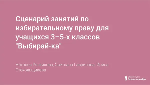 Представленная программа, охватывающая одну из наиболее актуальных задач - проблему воспитания активной жизненной позиции рассчитана на младших школьников 3–5-х классов и предполагает 8 увлекательных занятий. Вместе со сказочными героями из полюбившихся русских народных сказок ребята попадут в невиданную им страну "невыберайка" и придут к выводу о необходимости законов государства, о правах каждого гражданина, смогут научиться делать правильный выбор и даже поучаствовать в выборах президента.