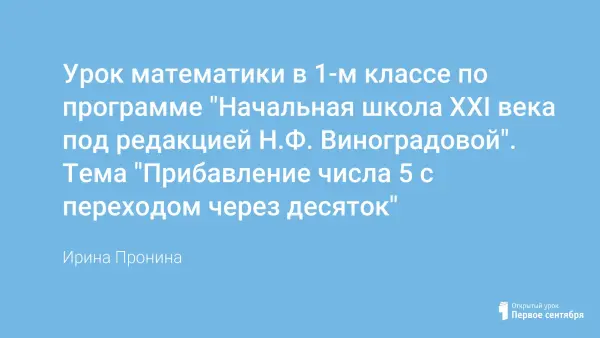 Урок математики в 1-м классе знакомит учащихся с приёмом сложения вида … + 5; формирует умение решать задачи; закрепляет знания состава чисел.