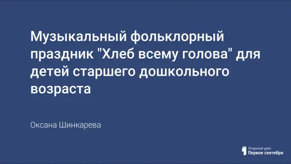 Основная цель музыкального фольклорного развлечения "Хлеб всему голова" - понимание роли человека-творца, человека-труженика через использование малых фольклорных форм (заклички, игры).