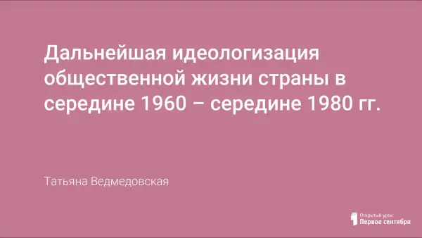 Урок рассчитан на учащихся 9-го класса. Цель урока – сформировать представления о динамике взаимоотношений власти, творческой интеллигенции и общества, показать противоречия в развитии художественной культуры, познакомить учащихся с основными аспектами Конституции 1977 г., дать представление о диссидентском и правозащитном движении.