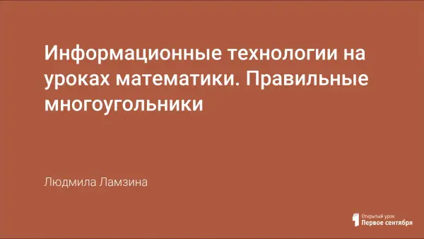 Особенностью урока является поддержка каждого его этапа компьютерной презентацией "Правильные многоугольники", выполненной c помощью программы Microsoft Office PowerPoint. Использование презентации позволяет учителю рационально использовать время урока, активизировать творческий потенциал учащихся. Показывает возможности применения компьютерных технологий на уроках математики.