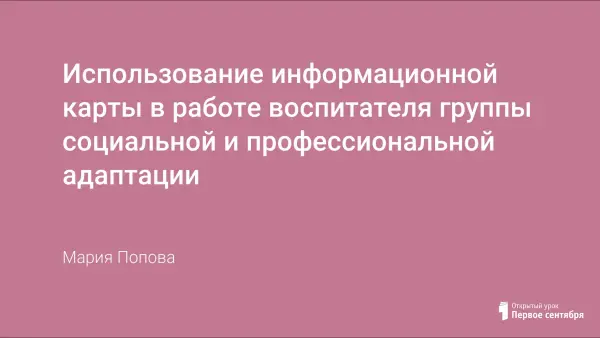 Работа воспитателя групп социальной и профессиональной адаптации сопряжена с большим объемом информации о подростках и их семьях, от своевременности использования которой напрямую зависит эффективность воспитательного процесса. Неоценимую помощь в профессиональной деятельности воспитателя оказывает работа с информационной картой.