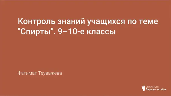 Контроль знаний учащихся по теме "Спирты". 9–10-е классы