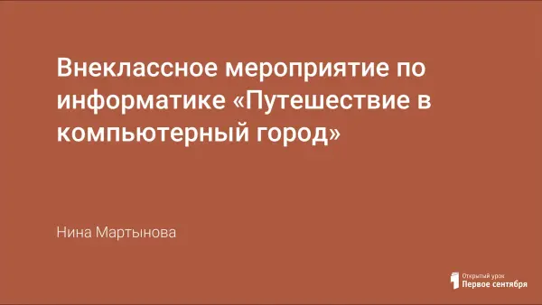 Представлено внеклассное мероприятие. Учащиеся совершают путешествие в компьютерный город, гуляя по его улицам узнают много интересного!