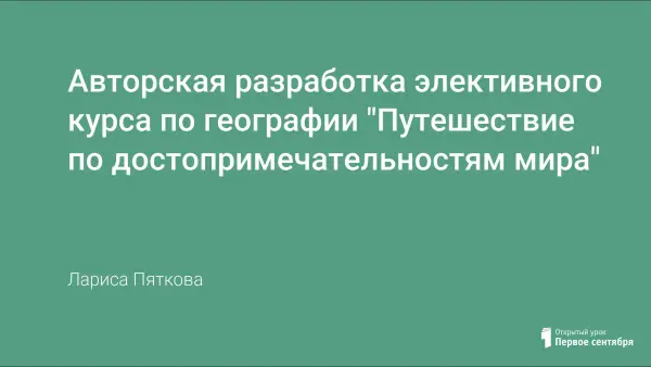 Современный мир очень интересен и привлекателен - это знакомые образы и прекрасные творения рук человеческих - Эйфелева башня, Мавзолей Тадж-Махал в Агре, оперный театр в Сиднее и другие. Особенностью данного курса является то, что используется сетевая инновационная образовательная программа страноведческого курса по географии "Как прекрасен этот мир" (автор Пяткова Л.В.).