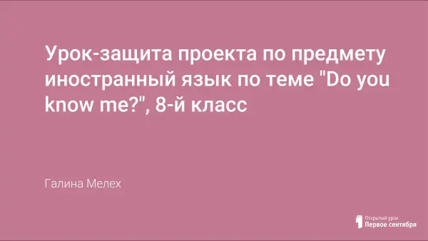 Представлена работа "Урок-защита проекта по предмету иностранный язык по теме: "Do you know me?", 8-й класс, УМК "New Millennium English 8".