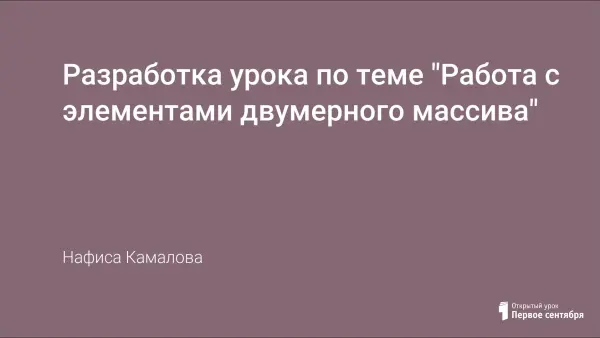 В статье рассматриваются методы и приемы работы с элементами двумерного массива, отрабатываются навыки и вырабатываются умения решения задач с использованием двумерных массивов.