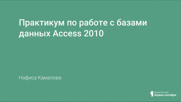 В практикуме представлены практические работы, предназначенные для учащихся 9-х классов в курсе освоения создания базы данных в Access 2010, а также поиска информации в готовой базе данных.