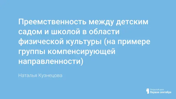 Одна из наиболее актуальных проблем в современном образовании – проблема преемственности между дошкольным и школьным образованием. Актуальность рассмотрения ее связано с нарушением преемственных связей в целях и задачах, содержания, а также с изменением требований общества к качеству воспитания детей дошкольного и младшего школьного возраста. Занимаясь физической культурой дети детского сада овладевают запасом двигательных навыков и умений, которые позволят им адаптироваться к новым условиям и требованиям, предъявляемым к учебной деятельности, помогут более успешному усвоению школьной программы не только на первых но и на последующих этапах обучения.
