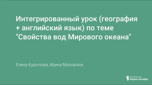 Интегрированный урок (география + английский язык) по теме "Свойства вод Мирового океана"