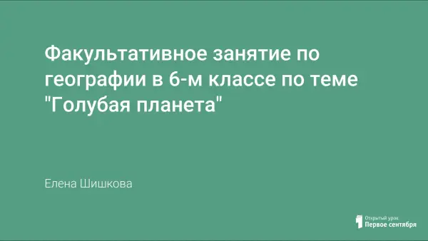 Факультативное занятие о водных ресурсах Земли из курса географии 6-го класса. Занятие разработано с учетом поставленных целей и возрастных особенностей. Имеет много дополнительной интересной информации, которую не всегда можно включить в ходе обычного урока. Цель занятия - развитие познавательного интереса, формирование экологической культуры обучающихся.