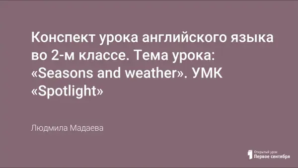 Конспект урока английского языка во 2-м классе. Тема урока: «Seasons and weather». УМК «Spotlight»